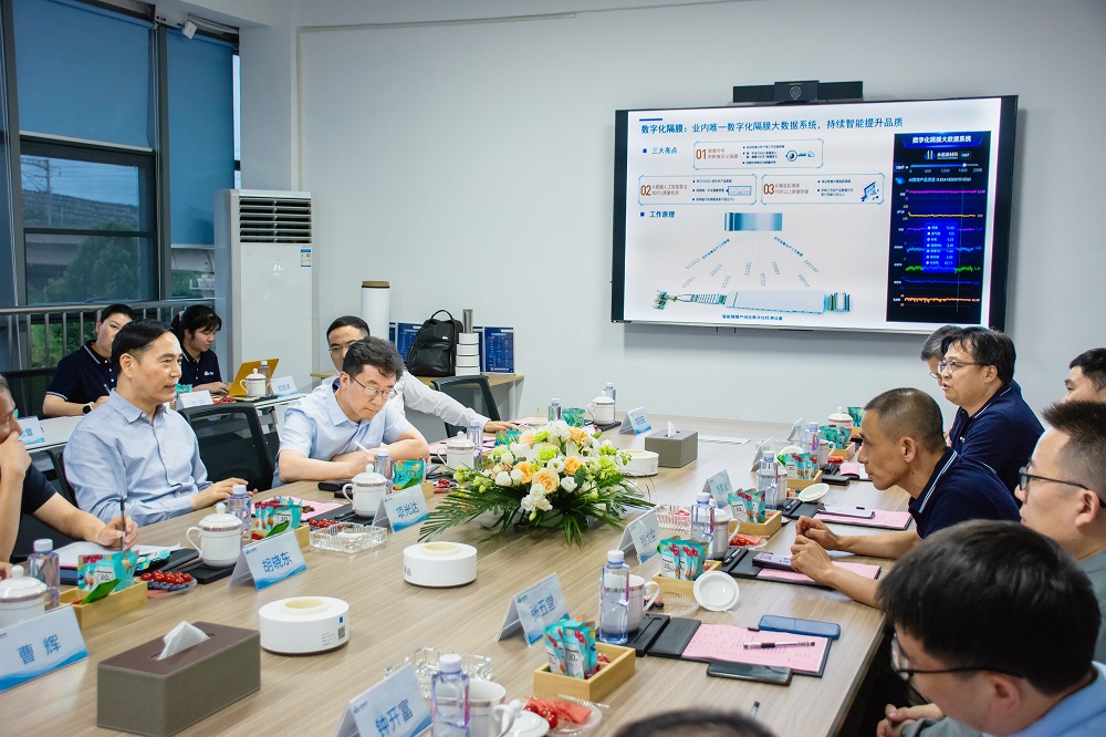 项光达主席一行参观了二期新车间。在参观过程中,李鸿利详细介绍了公司自主研发的设备、工艺流程等情况。在数字化隔膜展厅,通过九宫格屏幕的数字化隔膜大数据系统展示,大家直观感受了数字化隔膜大数据系统对于产品的重要性。