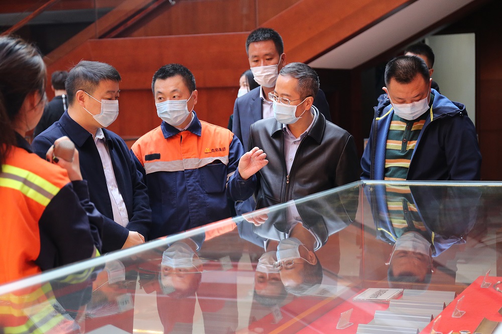 黄华一行还参观了集团供销中心、研究院、家具展厅、电子展厅等场所,并观看了企业宣传片。参观过程中,一行人员对青拓集团自主研发的“笔尖钢”等产品兴趣浓厚,提出了相关问题,钟盛江就企业产业链以及未来规划进行了解答,并对青拓不锈钢产品创新方面的卓越表现进行了详细介绍。
