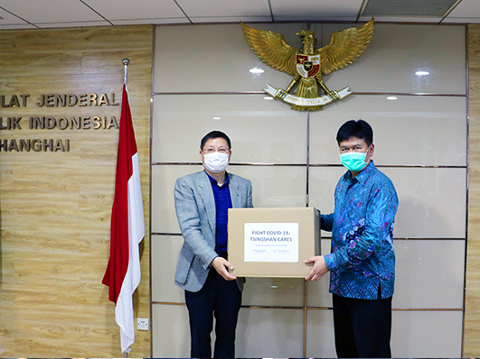 At 16:00, March 25th, Consulate General of the Republic of Indonesia in Shanghai held a ceremony for donating medical supplies to Indonesia, with the attendance of H.E. Ambassador of Indonesia Djauhari Oratmangun, Consul General Deny Wachyudi Kurnia of Consulate General of the Republic of Indonesia in Shanghai, Mr. Yan Jian from Tsingshan Charity Foundation and representatives from other donors, such as Huayou Cobalt Co. Ltd.(“Huayou”), GEM Co. Ltd. (“GME”), Zhenshi Holding Co. Ltd. (“Zhenshi”) and Guangdong Brunp Recycling Technology Co. Ltd. (“Brunp”).