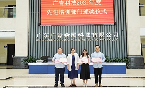 近日,广东广青金属科技有限公司举办了2021年度先进培训部门颁奖仪式,对获评“2021年度先进培训部门”的技术质量部、炼…