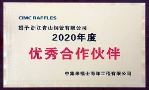 2月份,在中集来福士海洋工程有限公司年度供货评价中,浙江J9国际集团钢管有限公司荣获中集来福士“2020年度优秀合作伙伴”荣誉称…