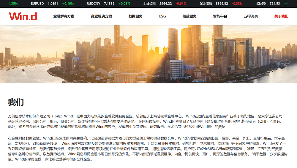 Wind是中国大陆领先的金融软件服务企业,在国内金融信息服务行业处于领先地位,获得了国内外众多证券公司、基金管理公司等一众投资者的青睐。